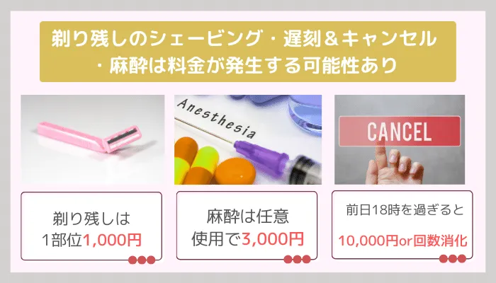 ※:上記以降のキャンセルは1回分消化orキャンセル料 ※6 背面シェービング無料(背中・うなじ・腰・お尻)、Oラインは除く を追記