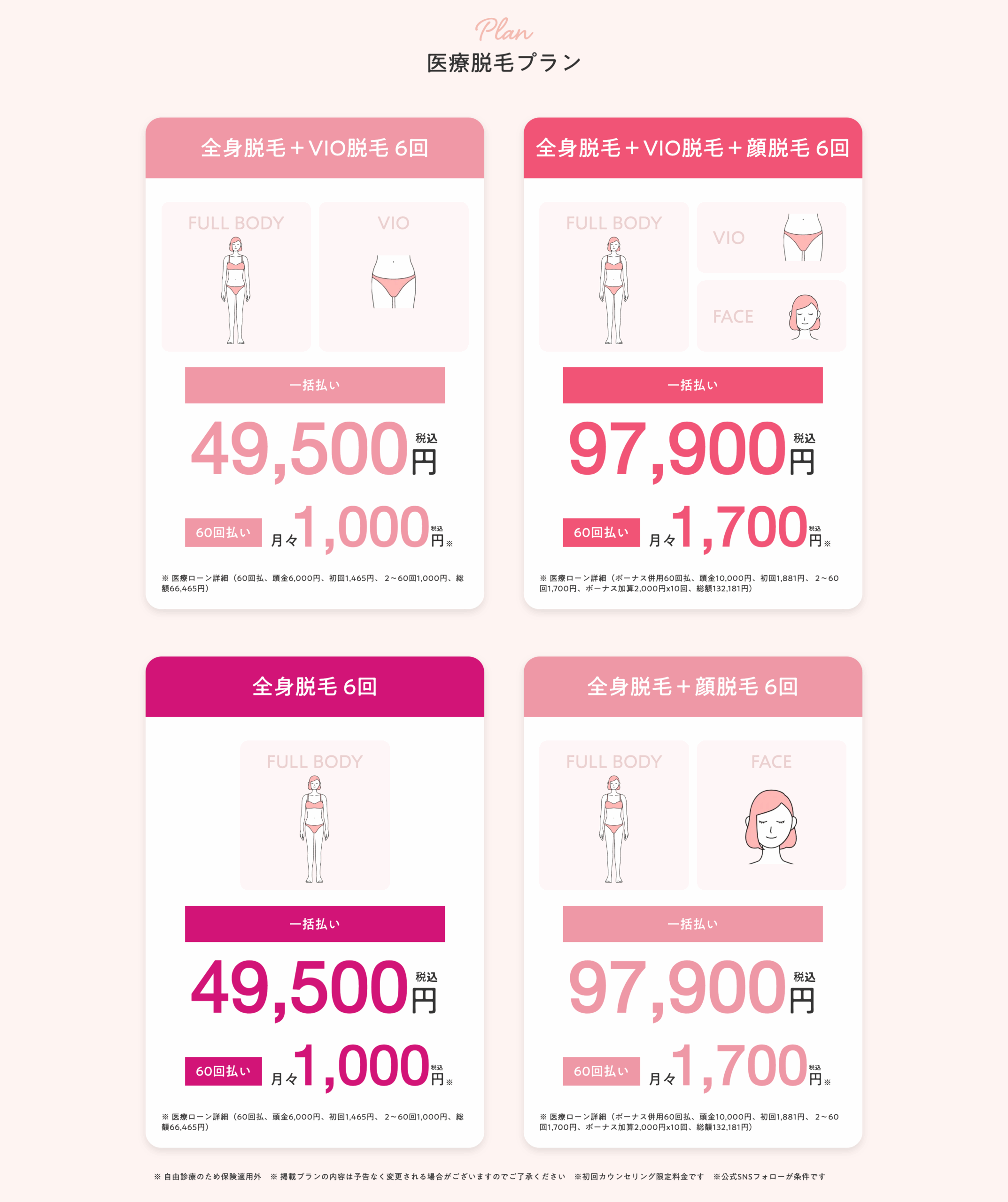 | 全身+VIO | \VIO付き/ 月々1000円/6回※1 |