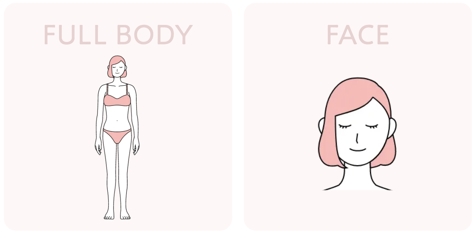 - 全身パーツ 両うで下・両うで上・両あし下・両あし上・ワキ・むね・おなか・うなじ・背中上・背中下・おしり