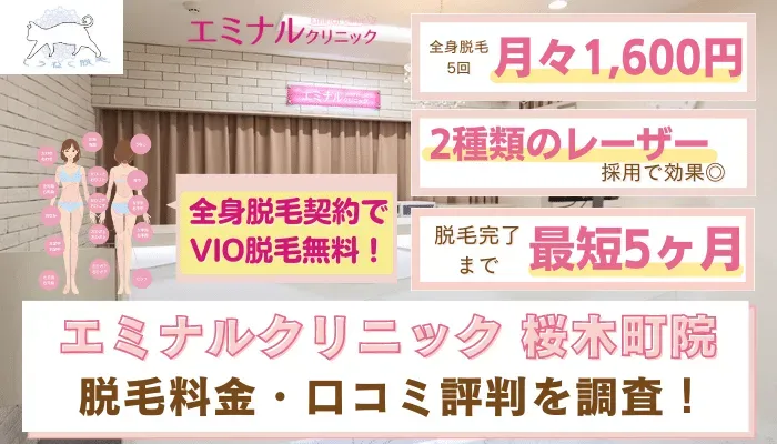 剃り残しがあるときのシェービング料・麻酔代などの追加費用やペア割・学割などのお得なキャンペーン・割引情報も含めて紹介しているので、最後まで記事を読めば『エミナルクリニック桜木町院』で知りたい情報がすべて分かります。