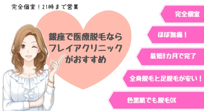 結論からお伝えすると、冒頭でも述べたように銀座駅周辺で医療脱毛ができるクリニックを探しているなら、フレイアクリニック銀座院は非常におすすめです。