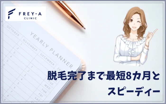- 最短8ヶ月と脱毛完了までのスピードが速い