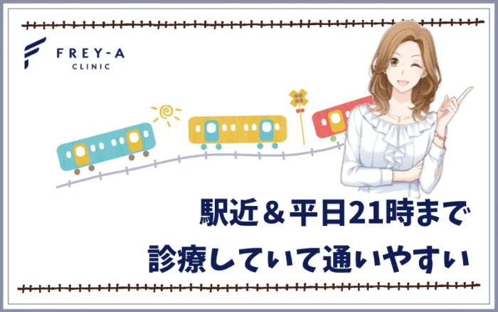 - 駅近&平日21時まで診療しており通いやすい
