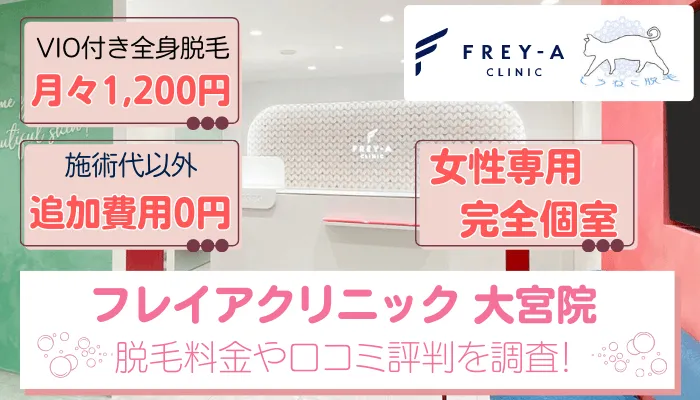 本記事では、大宮駅東口から徒歩3分で通えるフレイアクリニック大宮院の料金・支払い方法・剃り残しやキャンセルにかかる費用・解約について・導入している脱毛機の効果・おすすめ理由・学割や乗り換え割などのキャンペーン情報をまとめています。