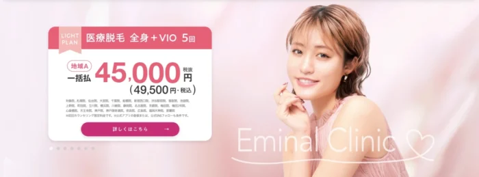 どちらも5回コースとなっており、VIOを含む全身脱毛は[affi id=8761]と良心的な価格になっています。