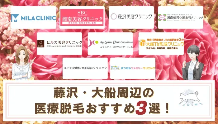 本記事では、藤沢駅から4〜5分程度の位置にある鎌倉市大船周辺のクリニックも含め、全部で9院の全身・VIO・顔・脇脱毛の料金や特徴を徹底比較しました。