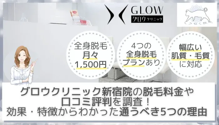 本記事ではグロウクリニック新宿院のアクセス情報、脱毛料金や追加費用、割引キャンペーンの詳細、予約・キャンセル方法、特徴を調査してわかったおすすめポイントを詳しく紹介しています。