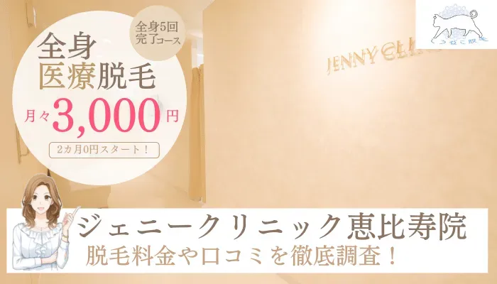 今回は、「恵比寿駅」より徒歩6分の場所にある『ジェニークリニックの脱毛料金や口コミ評判を調査した結果を紹介します。