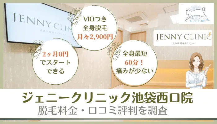 結論、ジェニークリニック池袋西口院は、VIO付きの全身脱毛5回が月々[affi id=673]&2ヶ月0円で始められる料金が安いおすすめの医療脱毛クリニックです。