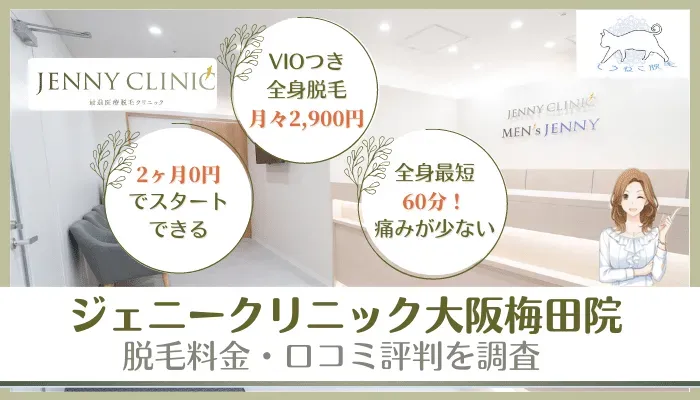 ジェニークリニック大阪梅田院の脱毛料金・口コミ評判を調査!5回で終わるのか・5つのおすすめポイントを解説