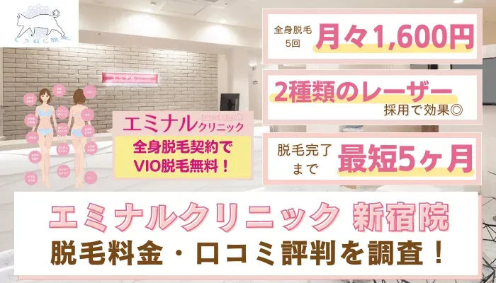 結論、新宿駅周辺で全身脱毛を目指せるクリニックを探しているなら全身脱毛が安い『エミナルクリニック新宿院』がおすすめです。