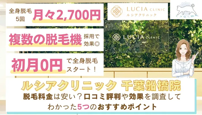 ルシアクリニック千葉船橋院を調査した結果、全身脱毛の料金が特に安く、リーズナブルに医療脱毛を始められるおすすめクリニックであることが分かりました。