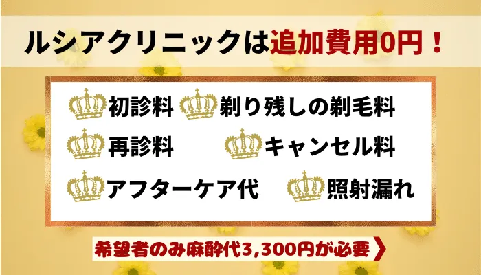 それでは早速、『ルシアクリニックの脱毛料金』や追加費用を詳しくチェックしていきましょう。