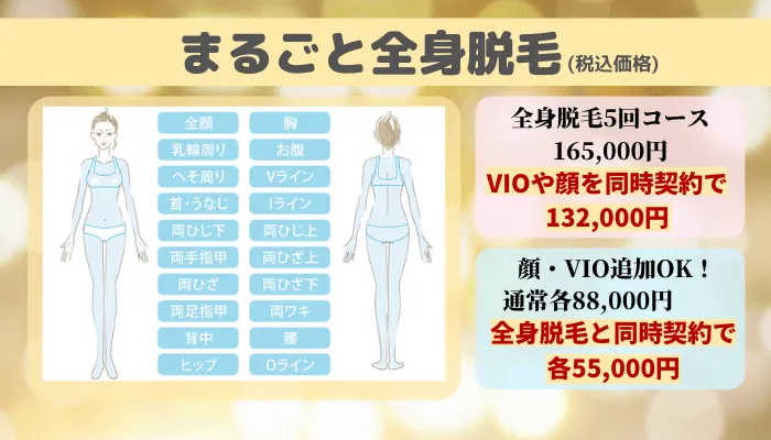 「まるごと全身脱毛」の料金をチェックしていきましょう。