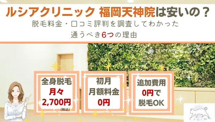 本記事ではルシアクリニック福岡天神院の詳しい脱毛料金や口コミでの評判を徹底調査し、本当におすすめできるクリニックなのかを検証しています。