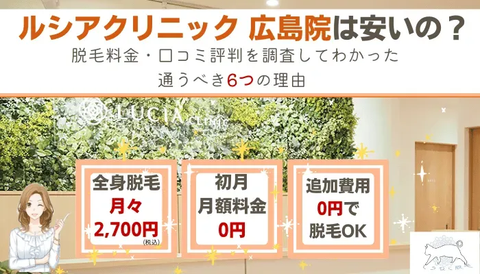 本記事では、ルシアクリニック広島院の脱毛料金や口コミ評判、おすすめポイントなどを徹底調査しています。