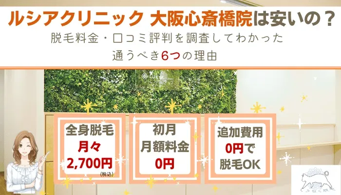 最初に結論をお伝えすると、『ルシアクリニック大阪心斎橋院』は、初月0円で医療脱毛を開始でき・脱毛料金が安い超優良クリニックです。