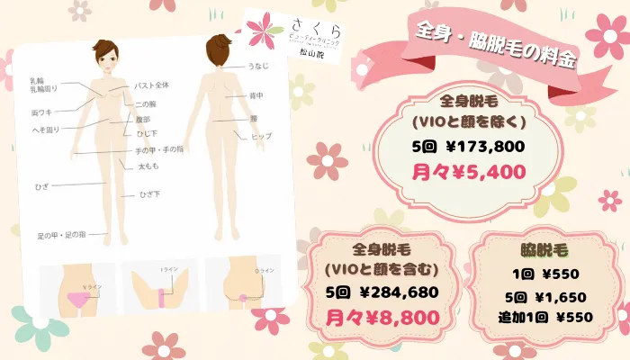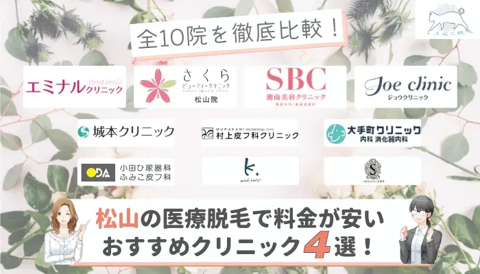 本記事では、口コミに頼らず愛媛県松山市内で医療脱毛を行っているクリニック・皮膚科10院を徹底比較し、全身・VIO・顔・脇の人気部位別に本当におすすめできるクリニック4院を詳しく紹介しています。