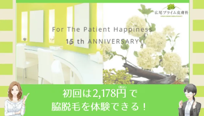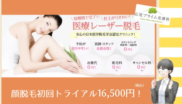 広尾プライム皮膚科:顔脱毛初回トライアルが[affi id=2229]
