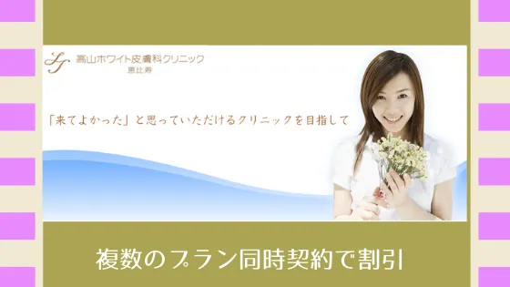高山ホワイトクリニック恵比寿』では、複数の部位を同時に契約するとセット料金から10~20%OFFの割引が適用されます。