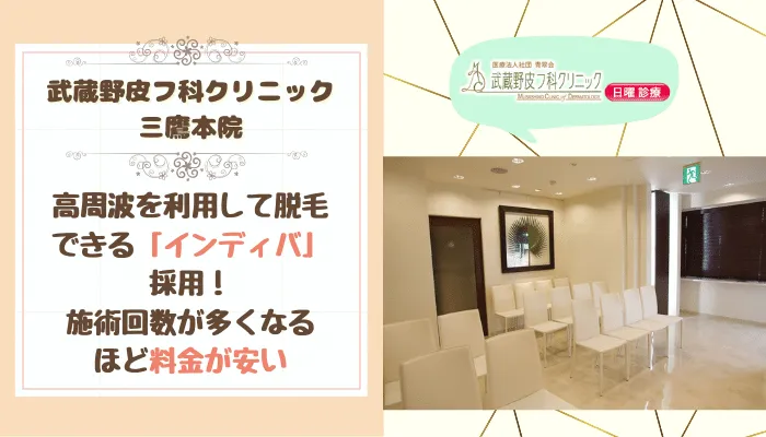 『武蔵野皮フ科クリニック三鷹本院』では、高周波を体内に通電させて脱毛する「インディバ」を導入しています。