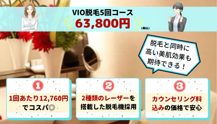 | \VIOつきで今なら/ 月1,000円 5回 /68,200円 |