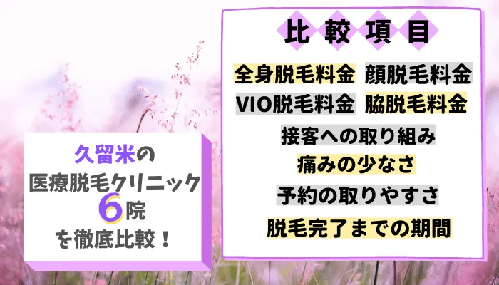 比較対象として久留米にある医療脱毛クリニック3院を紹介