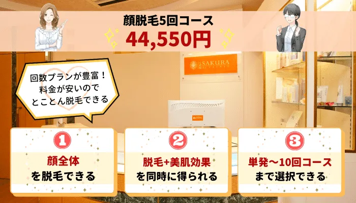 サクラアズクリニック大阪京橋院:顔脱毛5回コースが安く受けられる