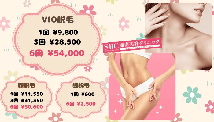 エミナルクリニックの全身脱毛を契約すると、期間限定でVIO脱毛が無料で付いてくるので、全身脱毛を安く受けたい方には絶対に外せません。