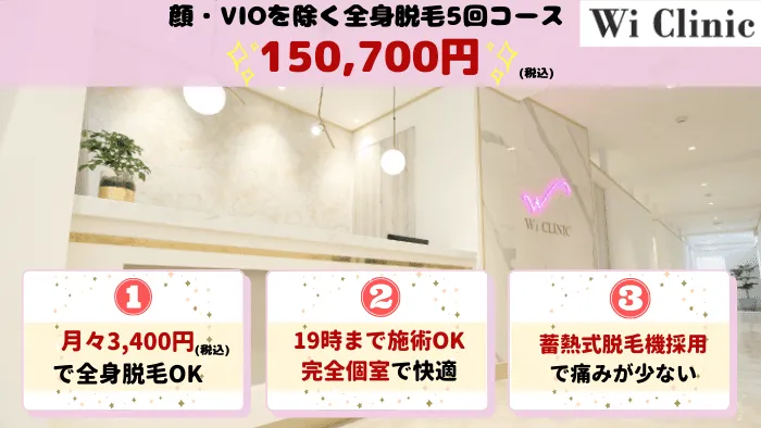 もし迷ってしまってどのクリニックが良いのか分からなければ、ウィクリニック銀座院』の全身脱毛をおすすめします。