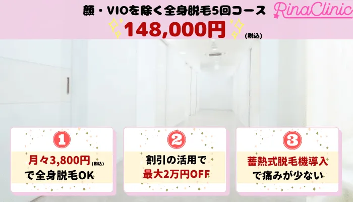 もしクリニック選びに迷ってしまうのであれば、『リナクリニック天王寺院』の全身脱毛をおすすめします。