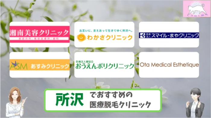 厳密にいうと、所沢には他にも医療脱毛を受けられるクリニックはありますが、料金が不明確・プラン数が少ない・相場よりも高いなどの理由で、正直おすすめできないため紹介していません。
