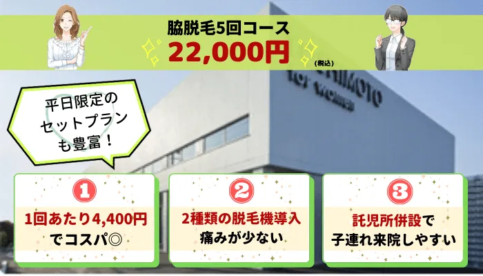 吉本レディースクリニック:脇脱毛5回コースが安い!蓄熱式脱毛機導入で痛くない