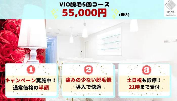 - VIO脱毛:[affi id=531]/5回(平日昼料金)