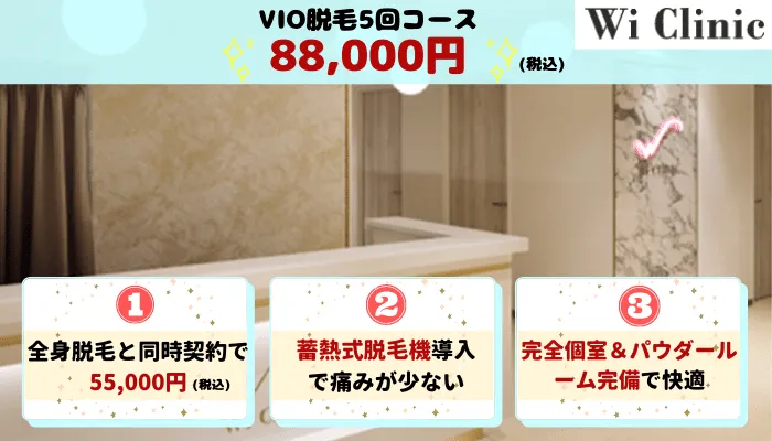 - VIO脱毛が5回で89,500円と安い