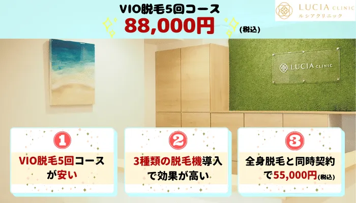 - VIO脱毛:89,500円/5回