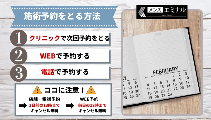 エミナルクリニックメンズ宇都宮院の施術予約・キャンセル方法
