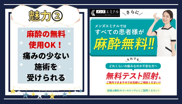 おすすめ理由2:麻酔の無料使用OK!痛みの少ない施術を受けられる