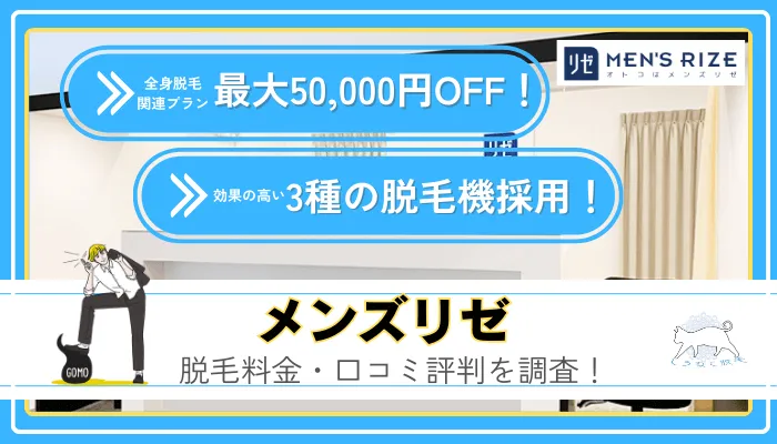 最初に総評をまとめると、メンズリゼは現在全身脱毛関連プランを最大50,000円OFFで契約できるガチでおすすめの医療脱毛クリニックです。