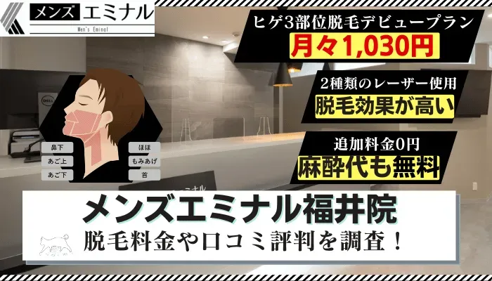 「エミナルクリニックメンズ福井院のヒゲ・全身・VIOなどの料金を知りたい」