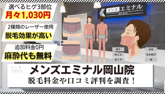 「エミナルクリニックメンズ岡山院の脱毛料金は安い?ヒゲ・全身・VIOなど部位ごとの詳細を知りたい」