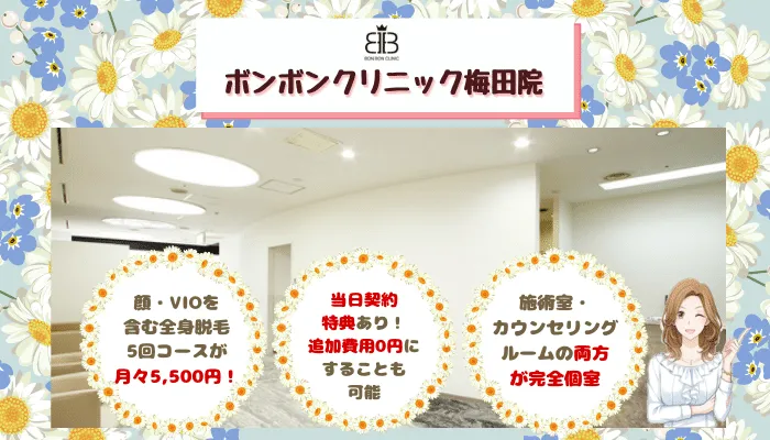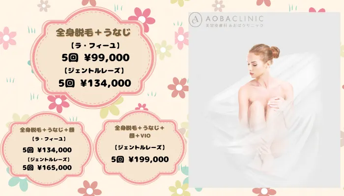 あおばクリニック心斎橋院・大阪梅田院:全身・VIO・顔・脇脱毛の都度払い価格が安い!初回限定プランあり