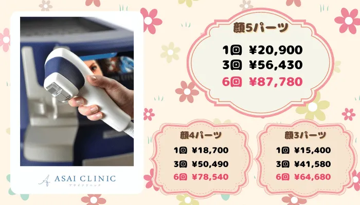 効果の出方には個人差が大きいですが、5回では終わらないことが多いので、追加照射の価格も確認しておくと安心かと思います。