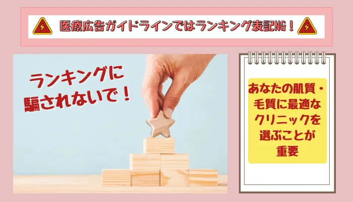 医療脱毛のランキング付けは、厚生労働省の『医療広告ガイドライン』によって表記NGと定められています。