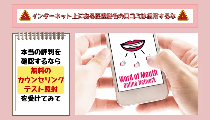 インターネット上で確認できる医療脱毛の口コミは信用できません。