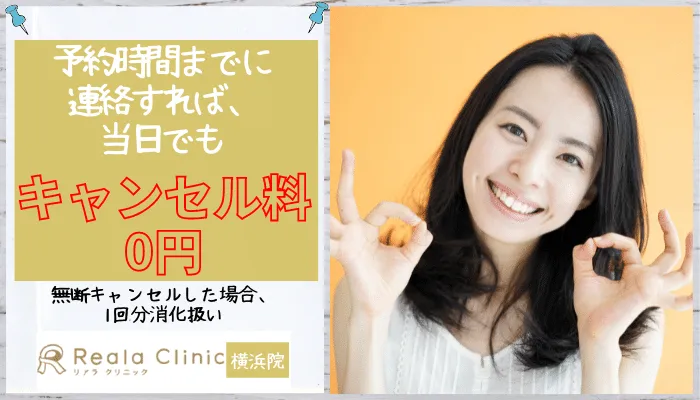 リアラクリニック横浜院は予約時間までに連絡さえすればキャンセル料0円!