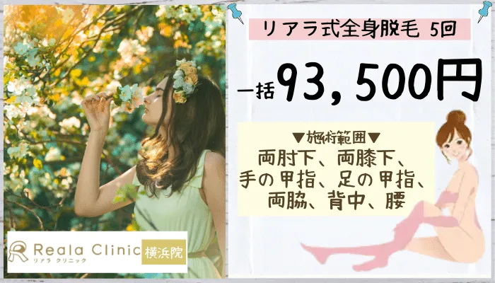 リアラクリニック横浜院では、リアラ式全身脱毛の他にもワキや腕、足など気になる部位だけを脱毛できるセットプランが用意されています。