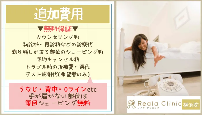 - 脱毛料金以外の追加費用0円!支払い総額が安い
