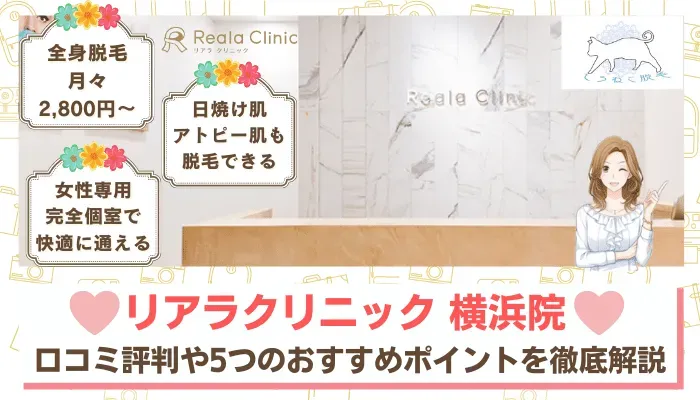 今回は、リアラクリニックの医療脱毛を始めようか迷っている方に向けて、リアラクリニック横浜院の脱毛料金や使用している機械、剃り残しの対応、学割・ペア割といったキャンペーン情報など、クリニックに行く前に知っておきたい情報を詳しくまとめました。