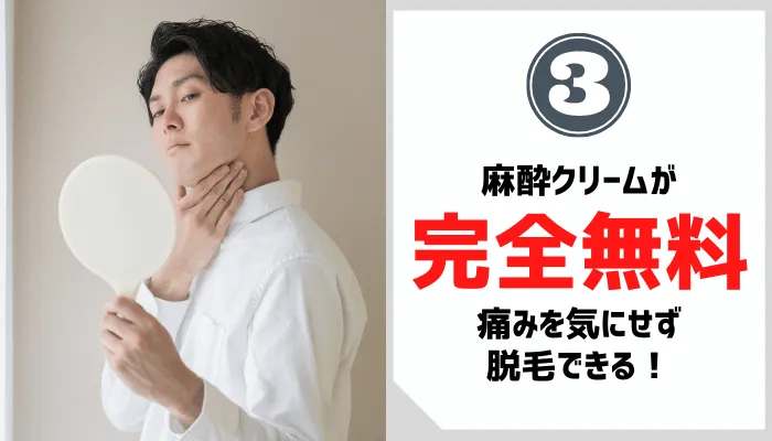 - 麻酔クリームが完全無料!痛みを気にせず脱毛できる!